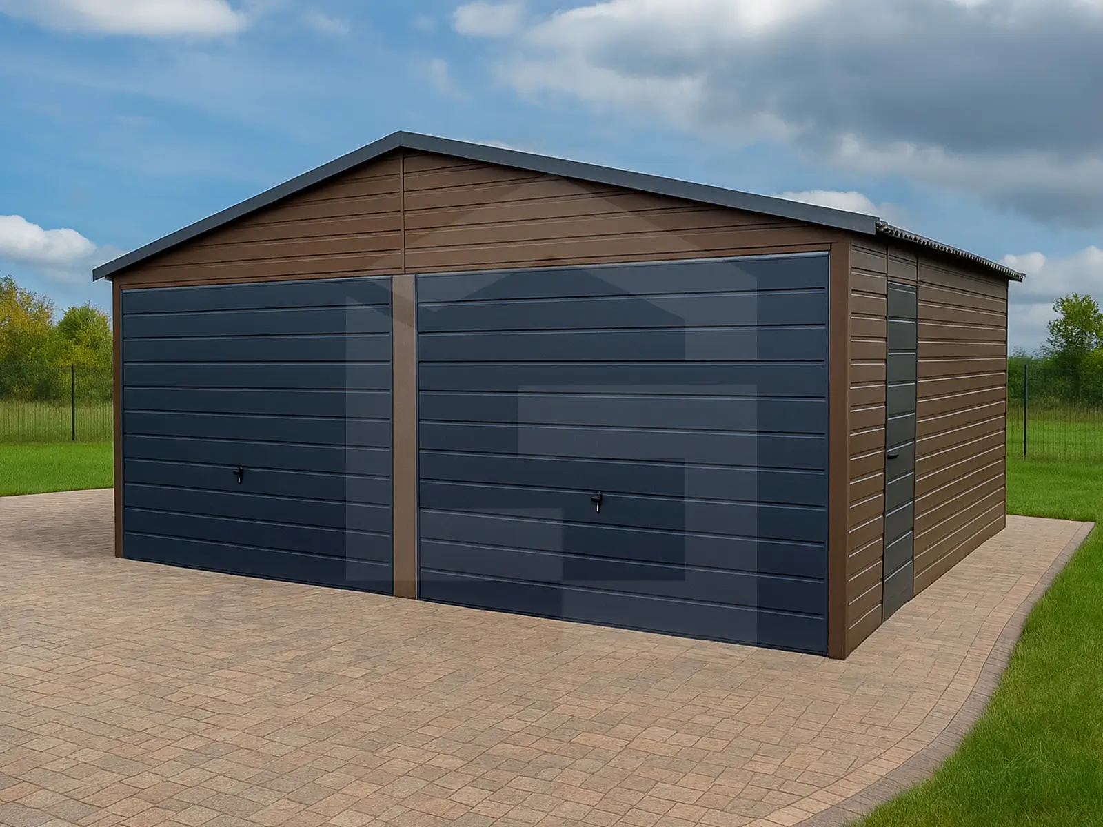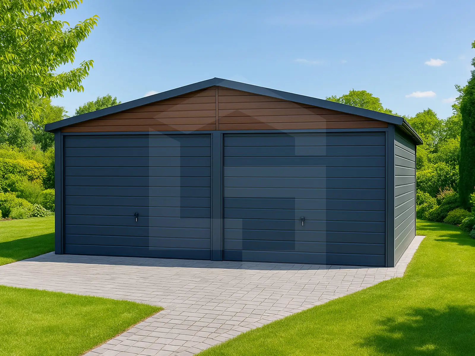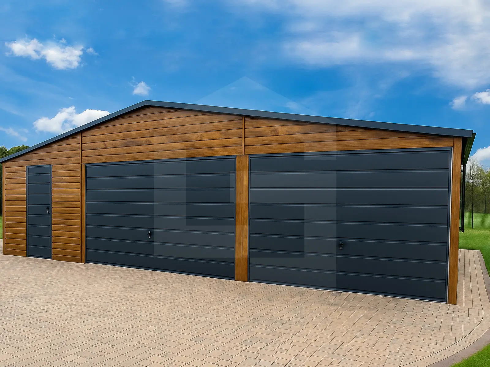 Garaże blaszane drewnopodobne, których wykończenie w strukturze drewna pozwala uzyskać elegancki, naturalny wygląd, bez konieczności konserwacji jak w przypadku konstrukcji drewnianych. Kolory takie jak orzech czy złoty dąb świetnie wpisują się w architekturę nowoczesną i klasyczną. To popularny wybór osób, które chcą, aby garaż stał się wizualnym przedłużeniem domu lub altany ogrodowej.