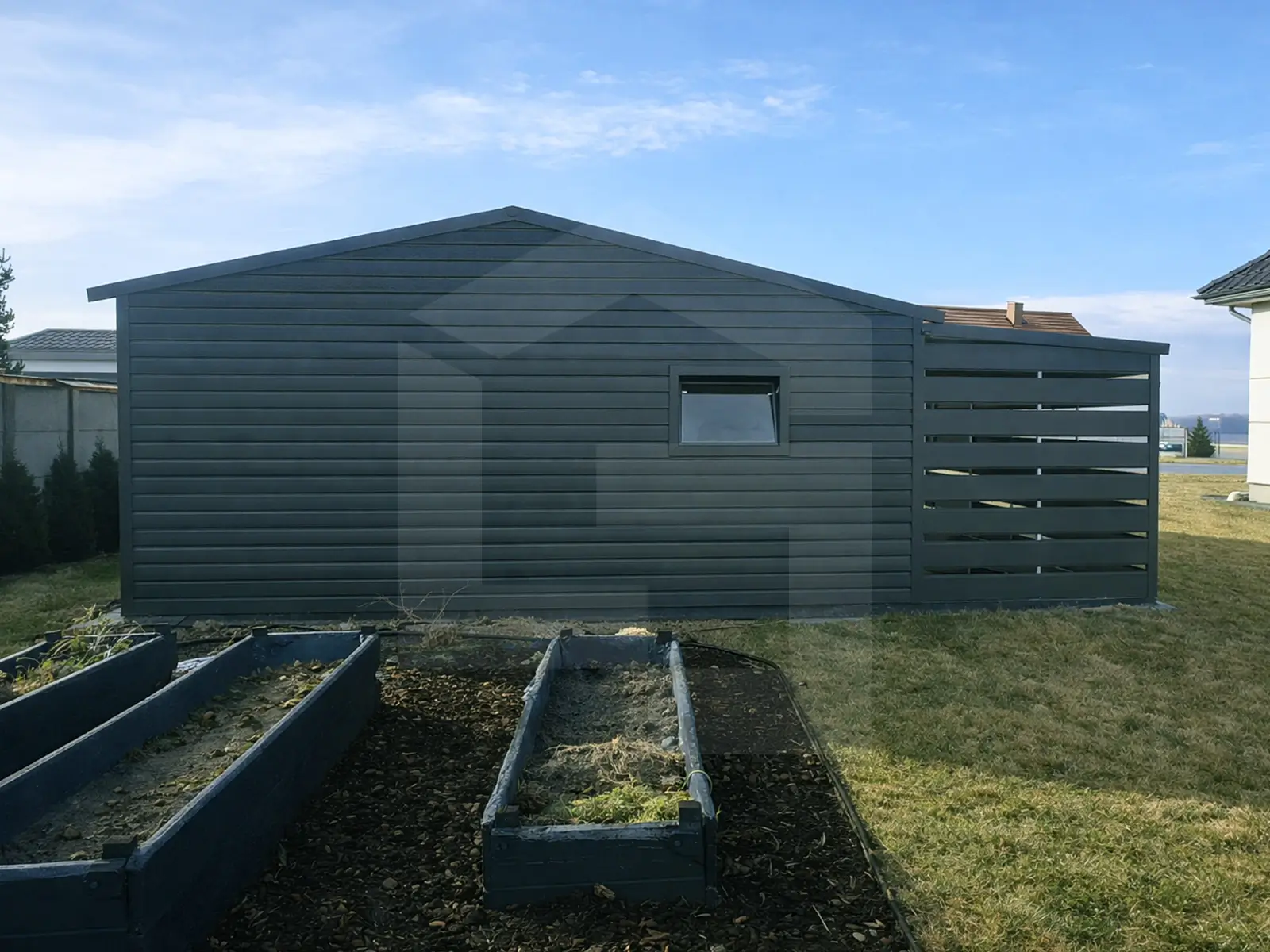 - Antracyt – nowoczesny, uniwersalny kolor podkreślający minimalistyczny charakter garażu i wiaty.
