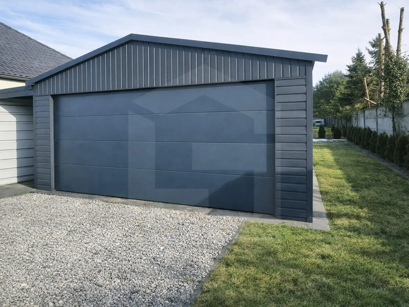 Garaż blaszany z bramą segmentową 6 x 5 z wiatą 2 x 5, antracyt