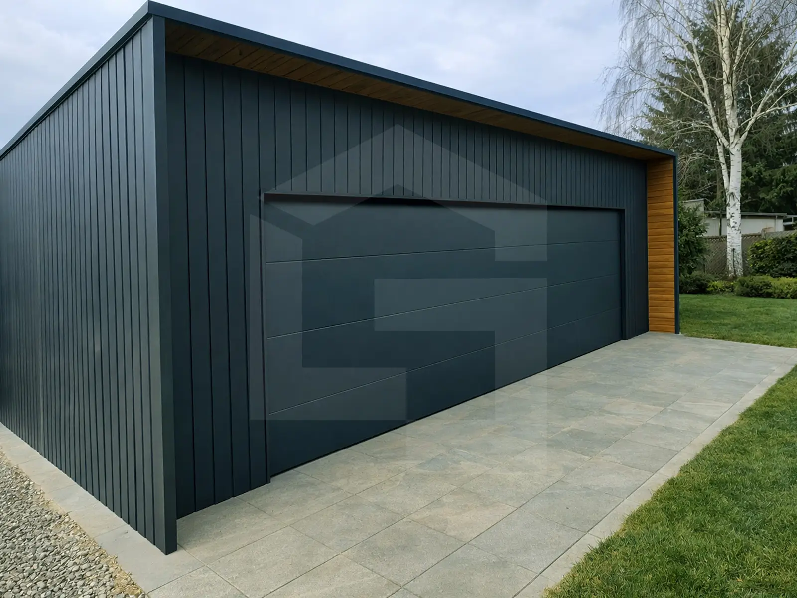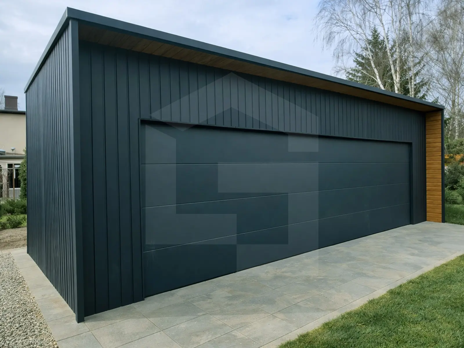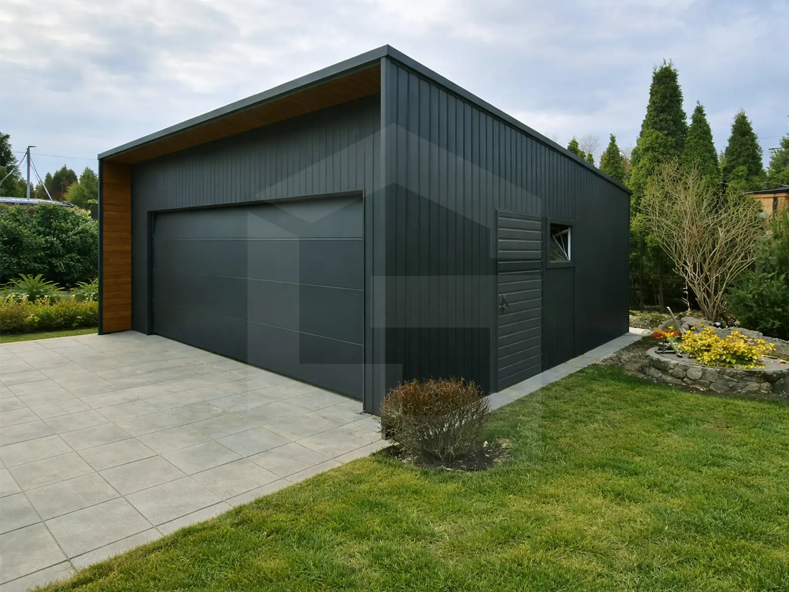 Kolor antracyt to jedno z najczęściej wybieranych wykończeń w nowoczesnych garażach blaszanych. Dobrze komponuje się z elewacją domu, stolarką okienną, bramą wjazdową oraz ogrodzeniem, dlatego pozwala stworzyć spójną i elegancką aranżację całej posesji.