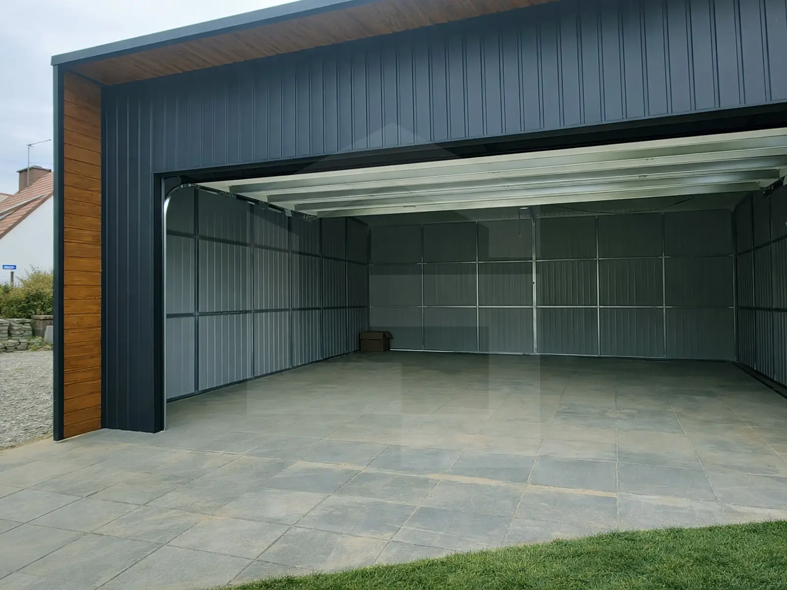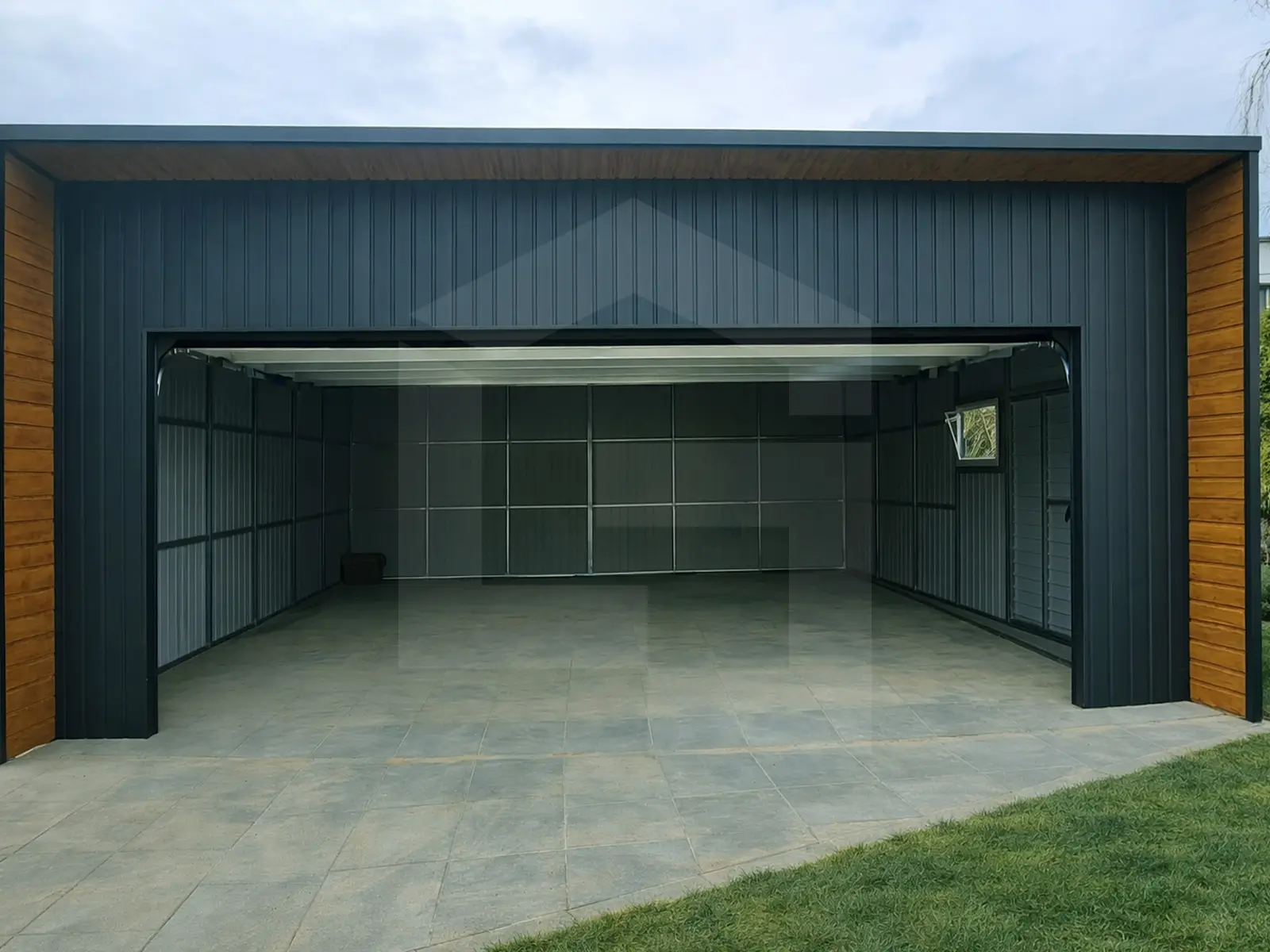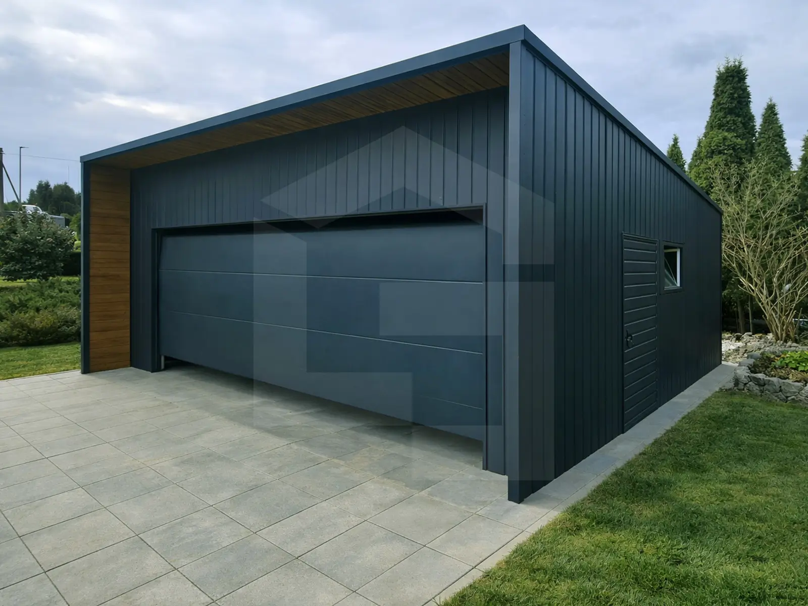 Kolor antracyt to jedno z najczęściej wybieranych wykończeń w nowoczesnych garażach blaszanych. Dobrze komponuje się z elewacją domu, stolarką okienną, bramą wjazdową oraz ogrodzeniem, dlatego pozwala stworzyć spójną i elegancką aranżację całej posesji.