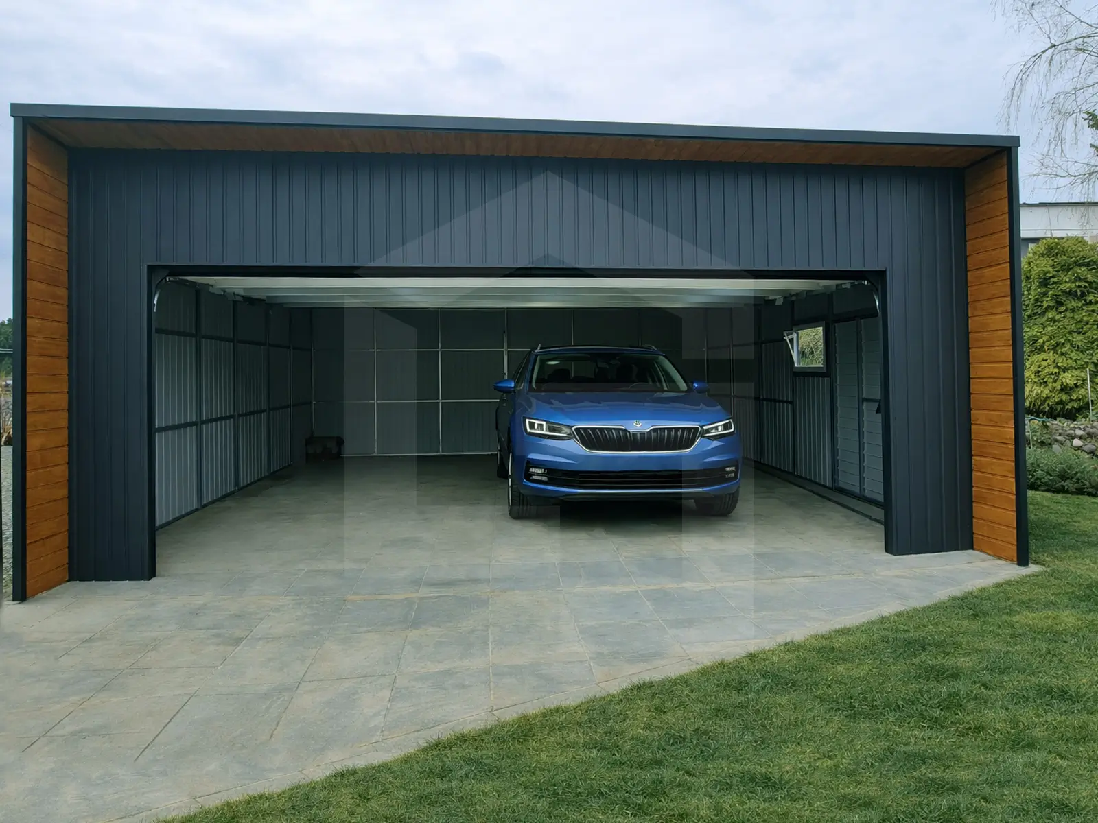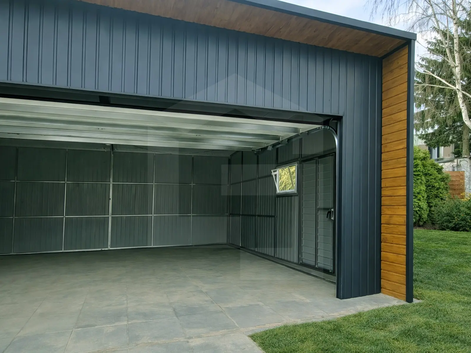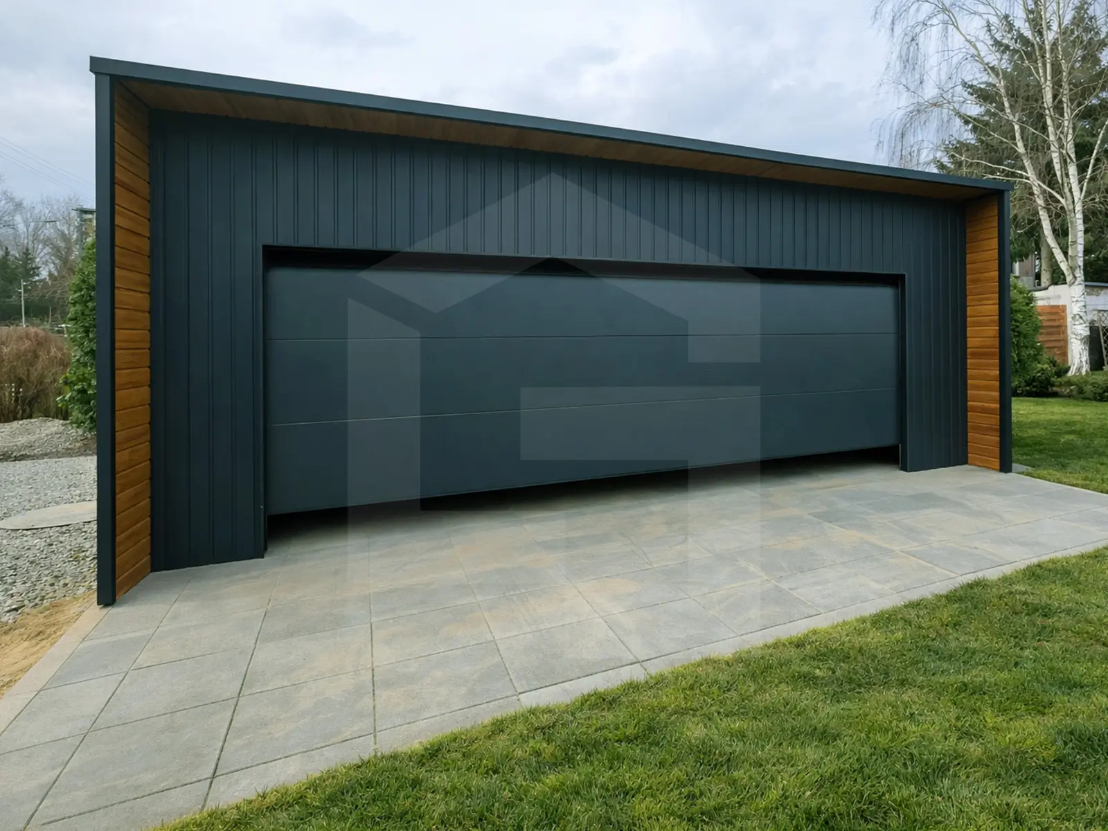 - Antracyt – nowoczesny, uniwersalny kolor podkreślający minimalistyczny charakter garażu i wiaty.